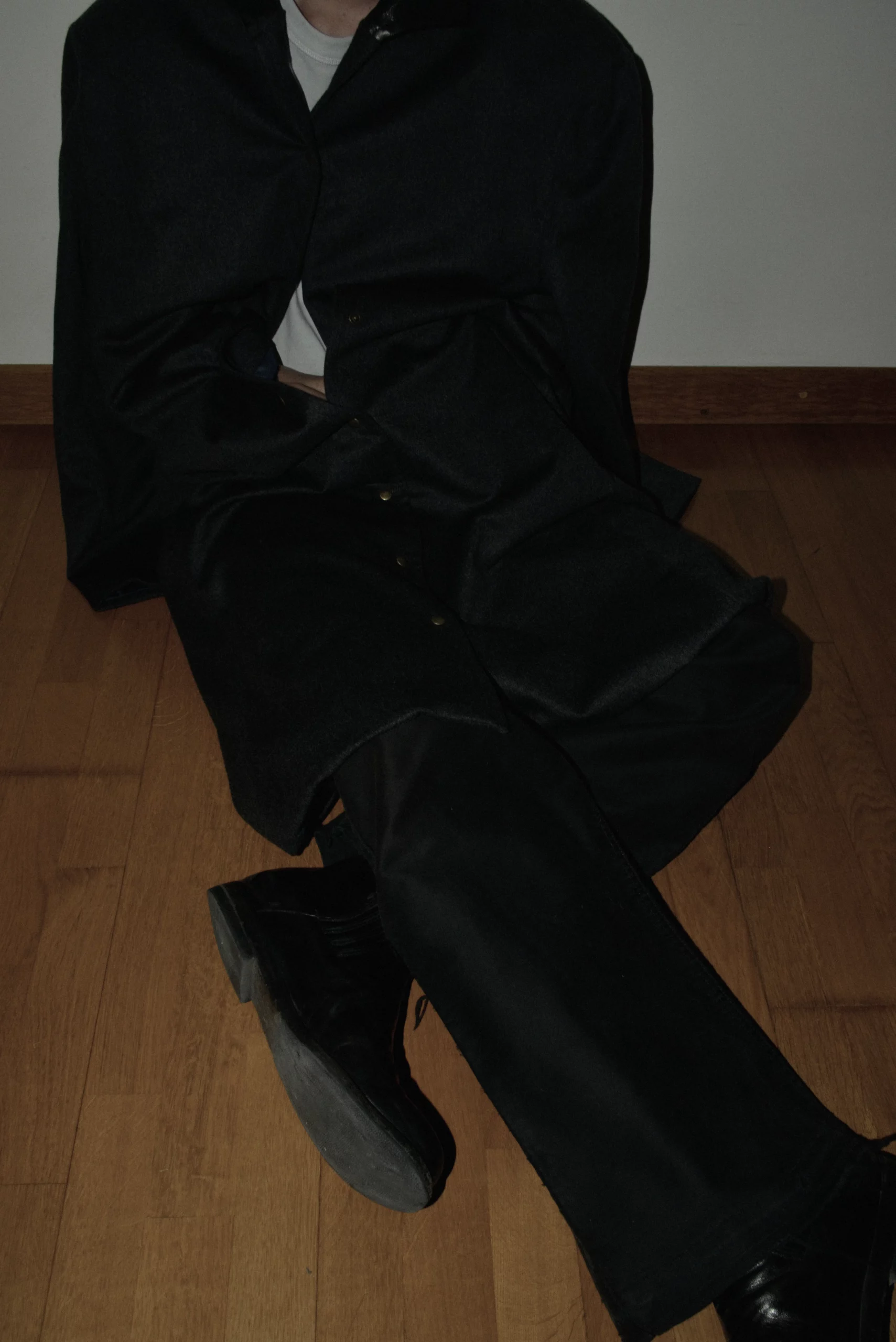 Ce manteau incarne ma vision du vêtement : une création durable, élégante et sincère, née de la rencontre entre tradition et sens du détail.