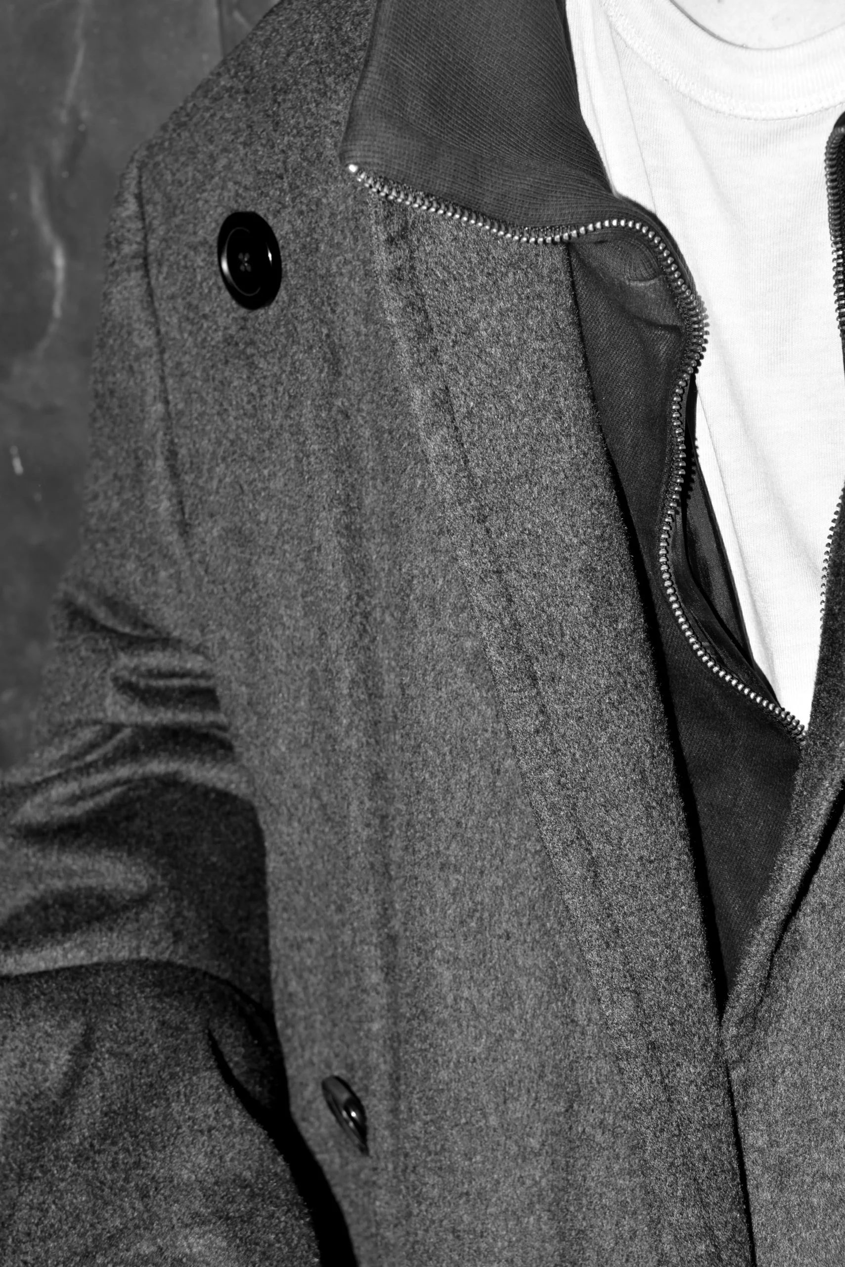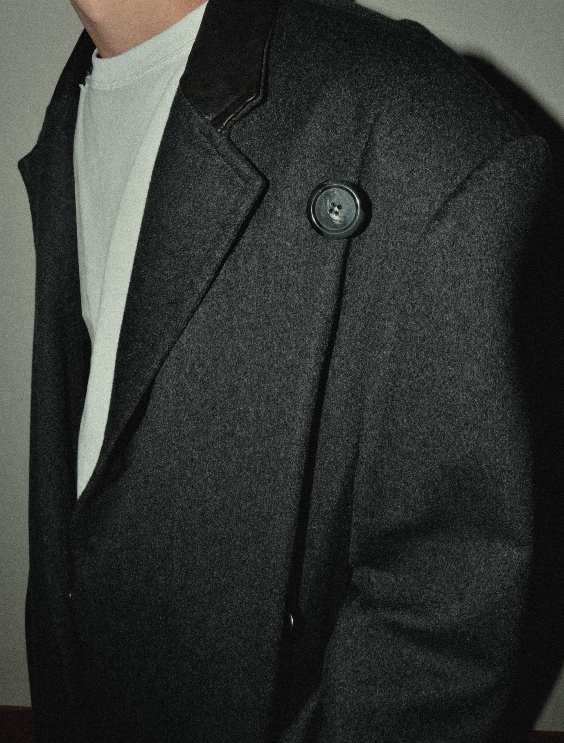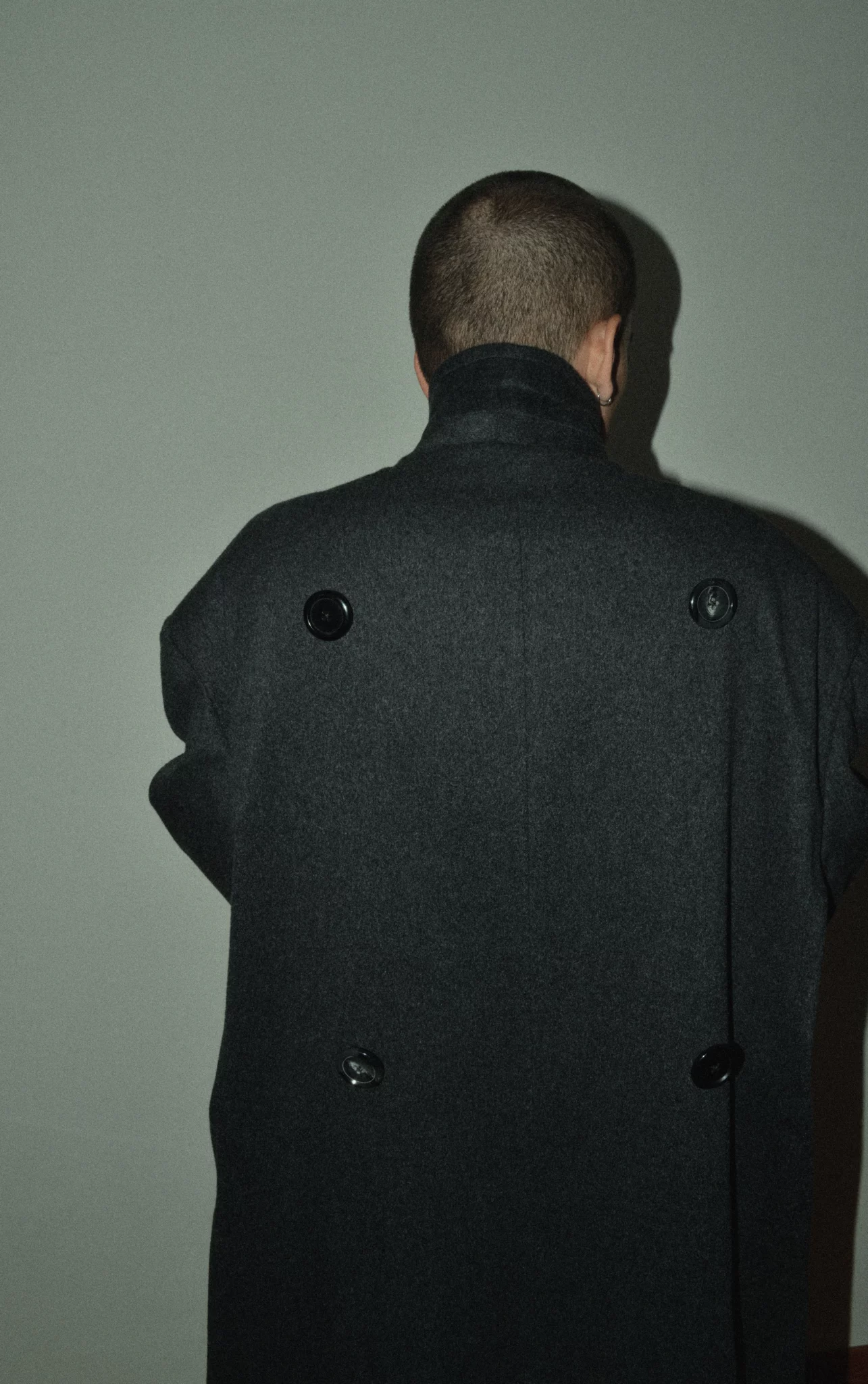 Chaque détail, du choix du tissu à la pose des boutons, a été pensé pour créer un vêtement à la fois chaleureux, structuré et intemporel.